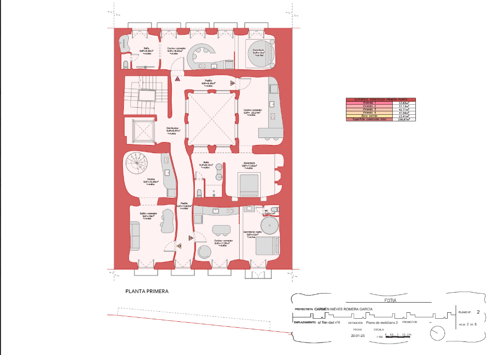 Mi cliente ha adquirido el edifico de la calle Trinidad nº4 para convertirlo en apartamentos turísticos. Quiere reformar la primera y la segunda planta del bloque, y me ha contratado para hacerle un buen