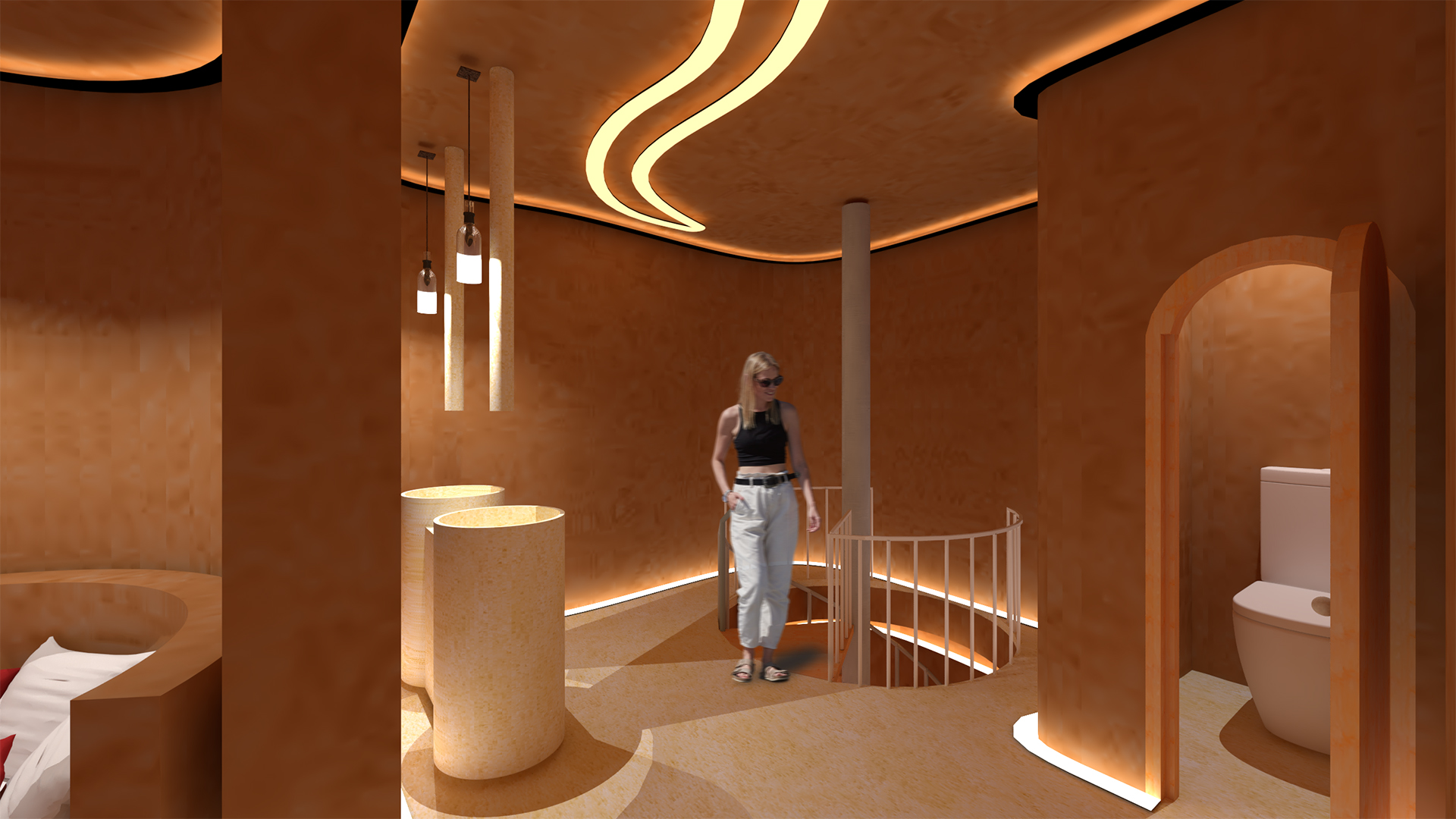 Los colores tierra son muy importantes para darle esa sensación de calidez, al igual que los materiales naturales utilizados como la piedra y la arcilla. La luz también juega un papel muy importante en el diseño, ya que le da un recorrido con sentido al espacio.